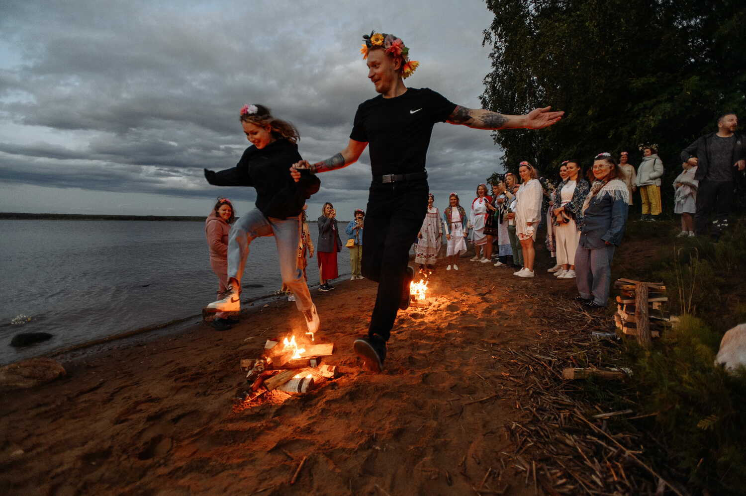 На берегу с самым красивым закатом, где солнце садится в море, вы попадете на веселый языческий праздник, который издревле отмечается на Руси. Под купальские обрядовые песни вы пройдете через сосновый бор, всех закружит хоровод и веселые игры. Всем известно, что нечисть боится веселья, так мы и будем его распугивать! А Чтобы переступить через вершину лета – нужно очиститься водой и огнем. Вас ждет веселое купание в Рыбинском море и прыжки через костер, что бы все наши желания исполнились, обязательно запустим венки и погадаем! Ну а куда же без праздничного угощения и яркого огня?! Завершит программу яркое огненное шоу!